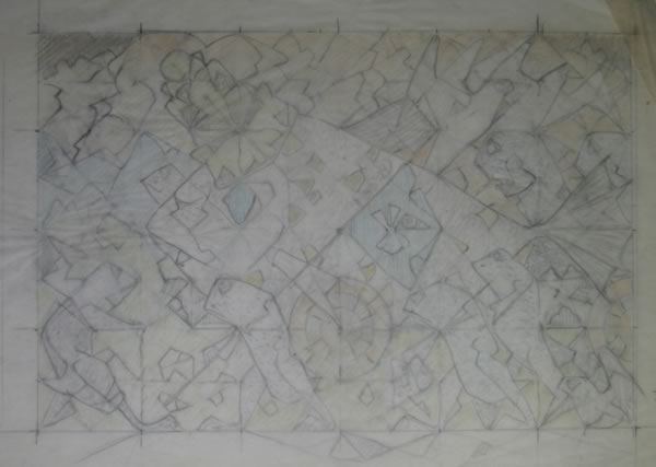 Bleistift, Buntstift auf Pauspapier